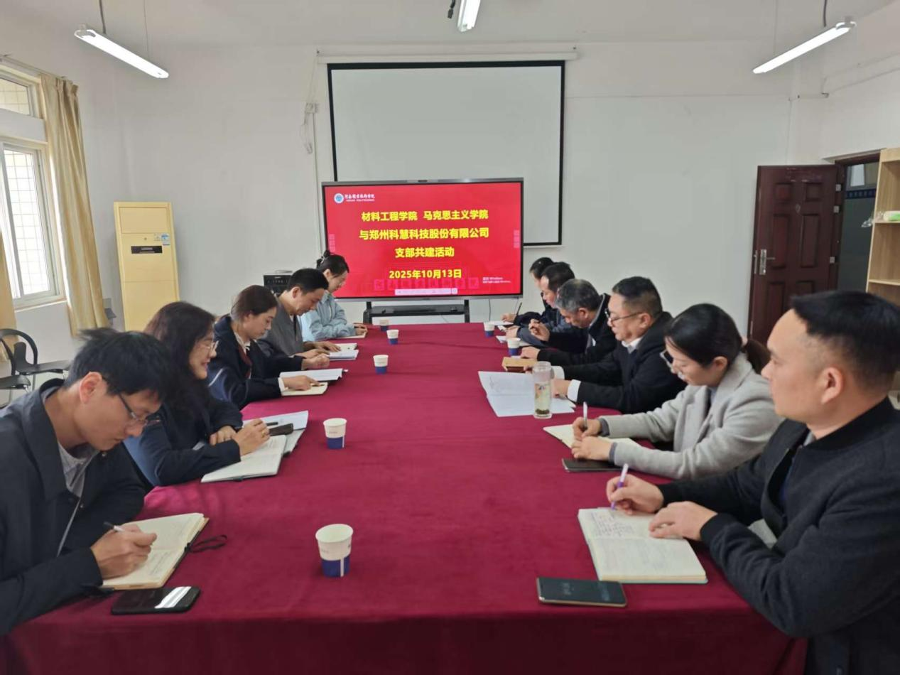 2025年10月13日上午,材料工程学院、申博sunbet官网与郑州科慧科技股份有限公司(以下简称“科慧科技”)联合开展支部共建活动。材料工程学院党总支书记王冠、副院长武同、党总支副书记余湾,申博sunbet官网副院长、教师第一党支部书记胡海涵,科慧科技副总经理马慧楠等共同出席。